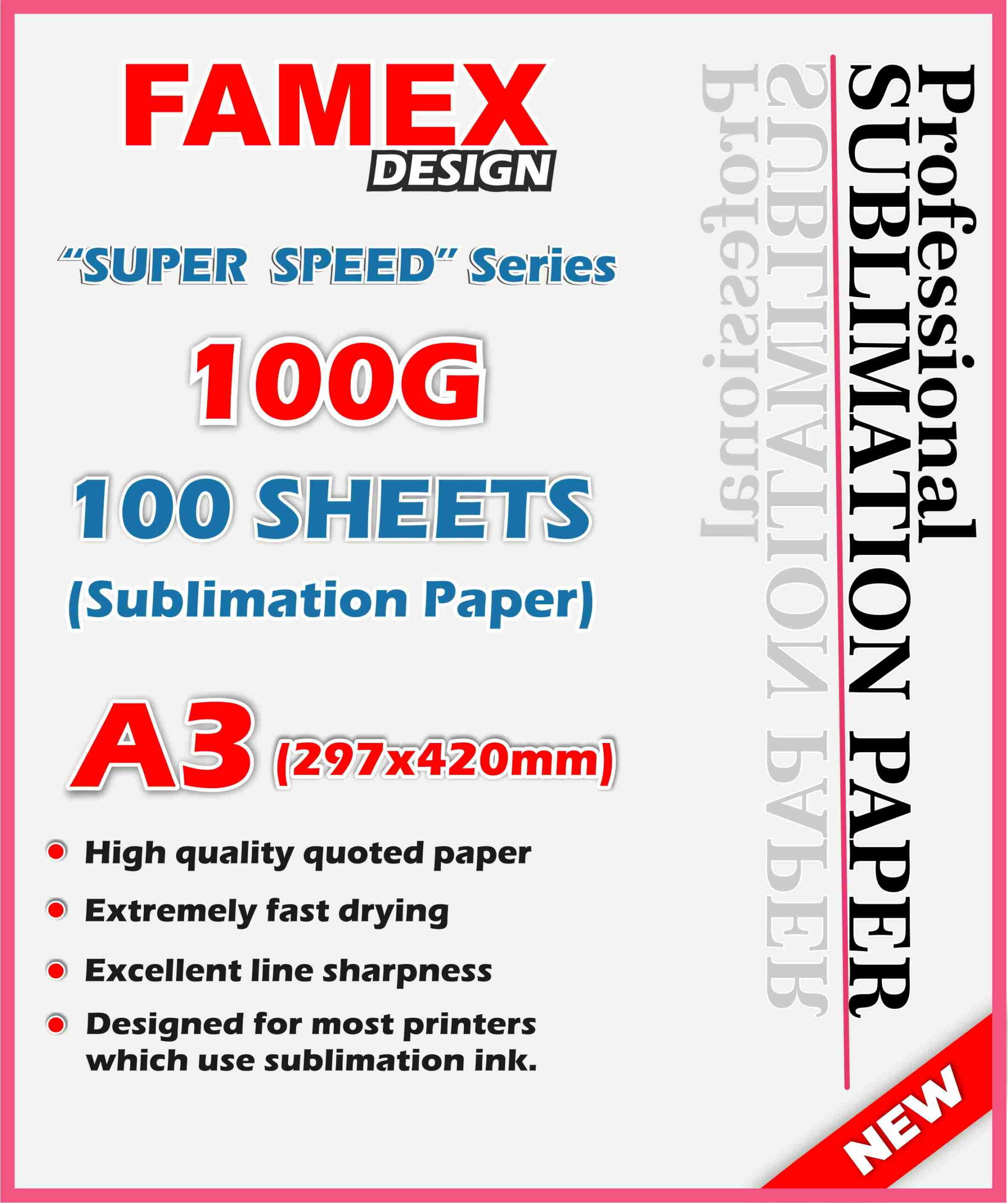 Famex Design Sublimation Paper 100g – Super Speed Series (297mm x 420mm)